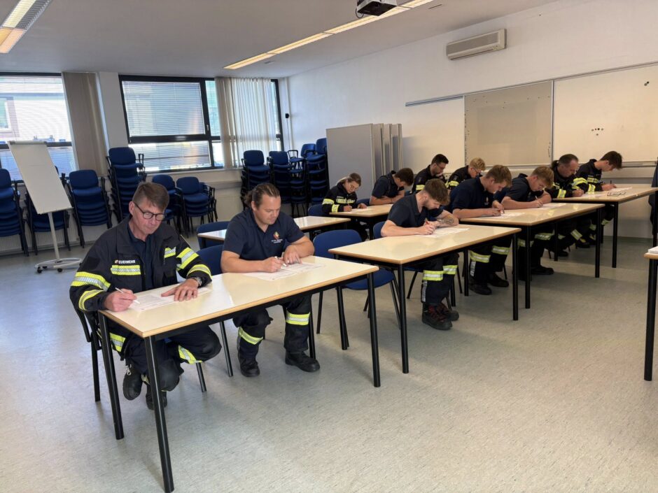 Der Vormittag stand ganz im Zeichen der theoretischen Prüfung, bei der das Wissen rund um Gerätekunde, Sicherheit und Einsatzabläufe überprüft wurde.